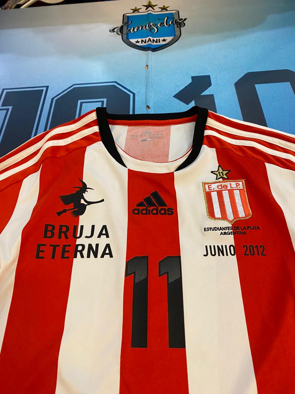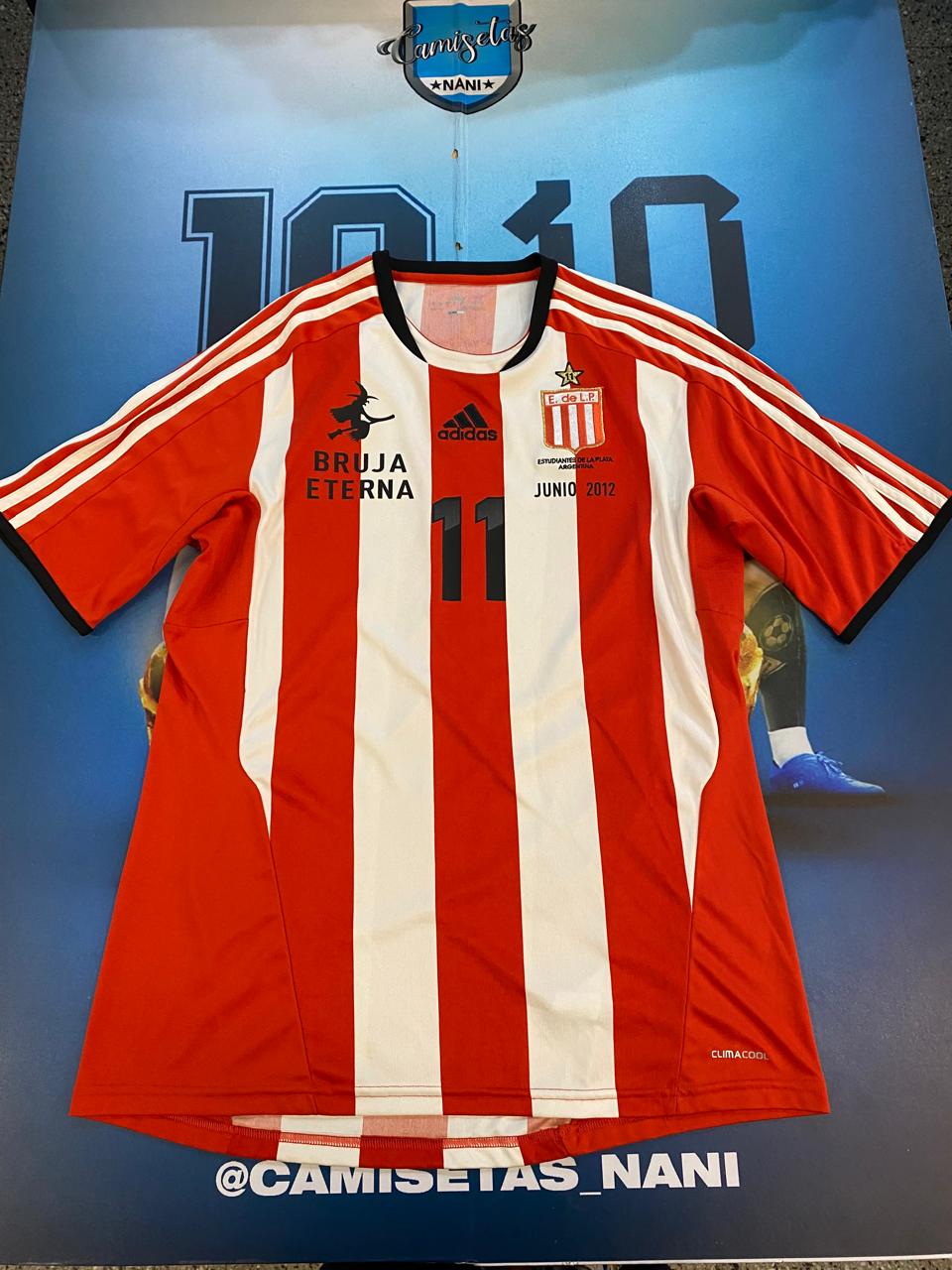 Camiseta de estudiantes dela Plata 2012 usada el 16 de junio del 2012 vs Olimpo de bahía blanca talle L 11 veron gracias bruja