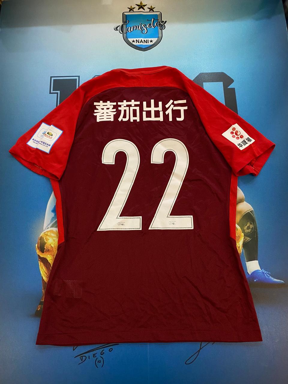 Camiseta del hebei fortune 2018 utileria usada por 22 lavezzi talle XL