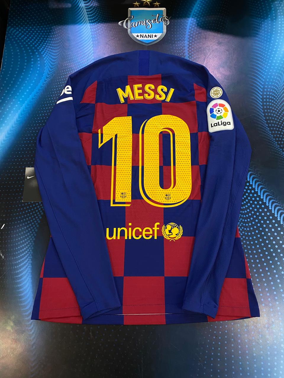 Camiseta mangas largas del barcelona 2019 versión jugador etiqueta termo sellada 10 messi talle L